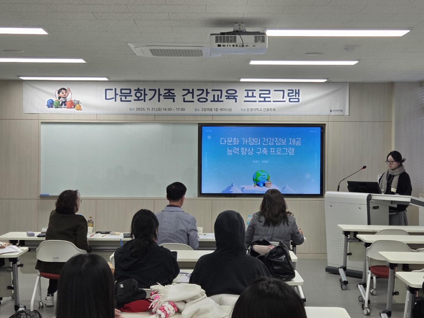 2학년 재학생 8팀이 참여해 다문화 가족 건강교육프로그램 개발에 대한 발표도 하고 다문화가족에 대해 친근하게 다가가고 이해하는 의미있는 시간이었습니다.