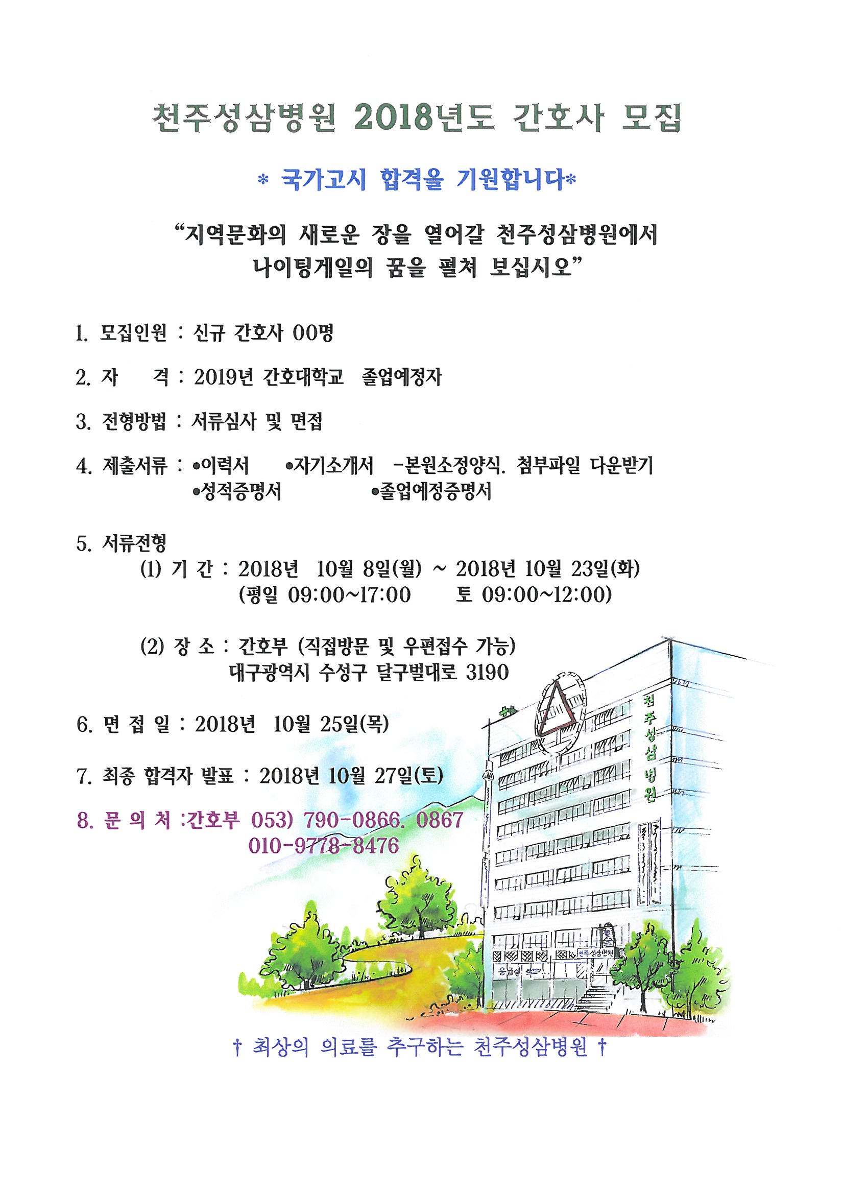 천주성삼병원) 2019년 신규간호사 모집