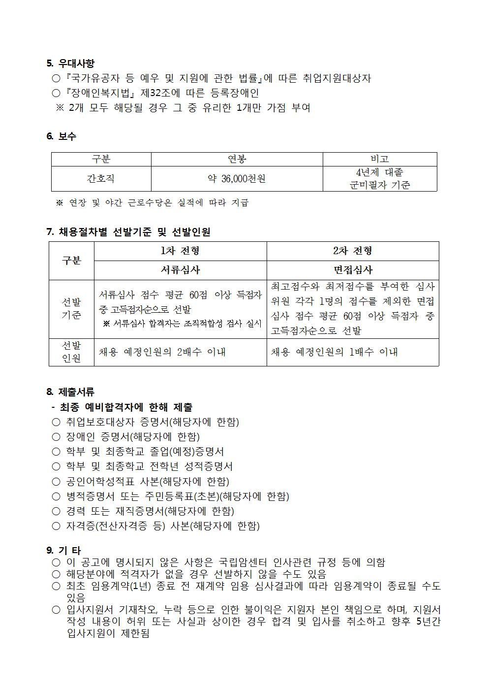 국립암센터 간호직(졸업예정자) 채용공고