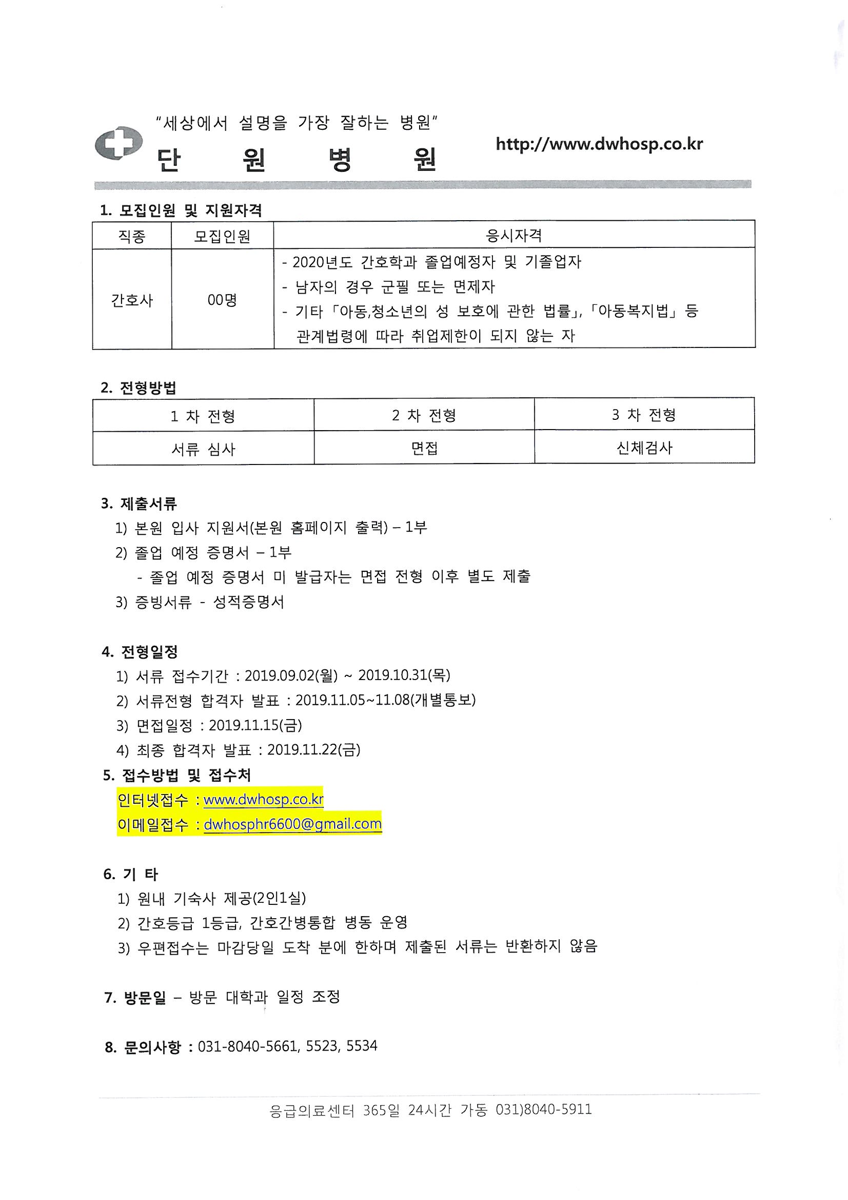 단원병원 2020년 신규간호사 모집