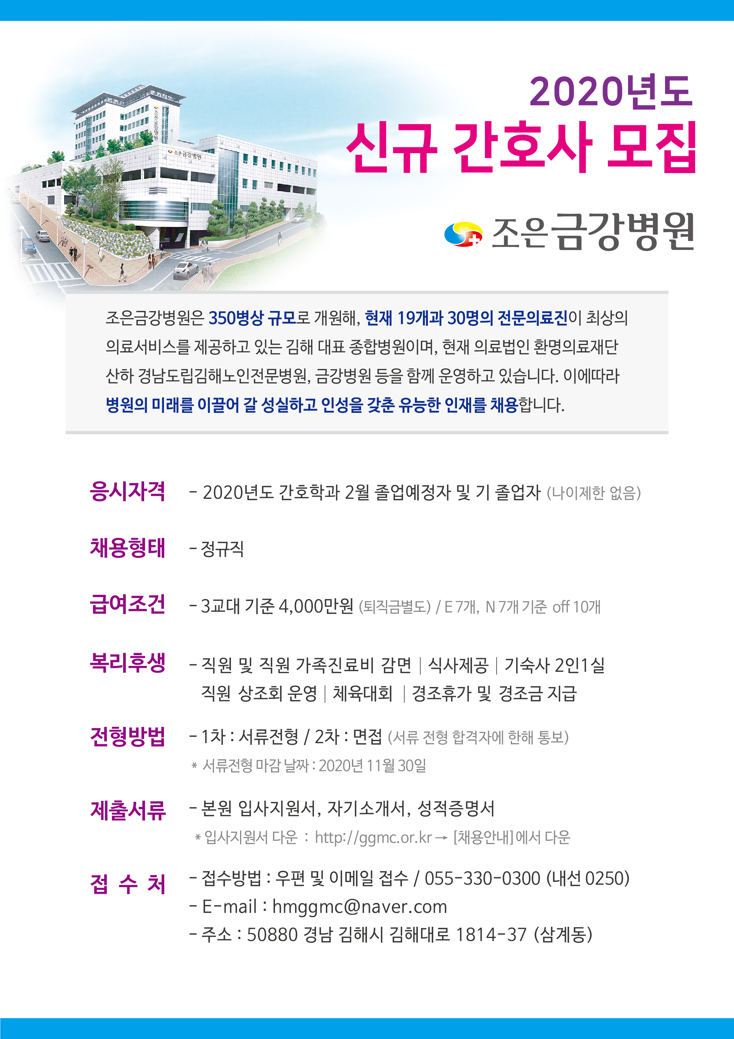 2020년도 조은금강병원 신규간호사 모집