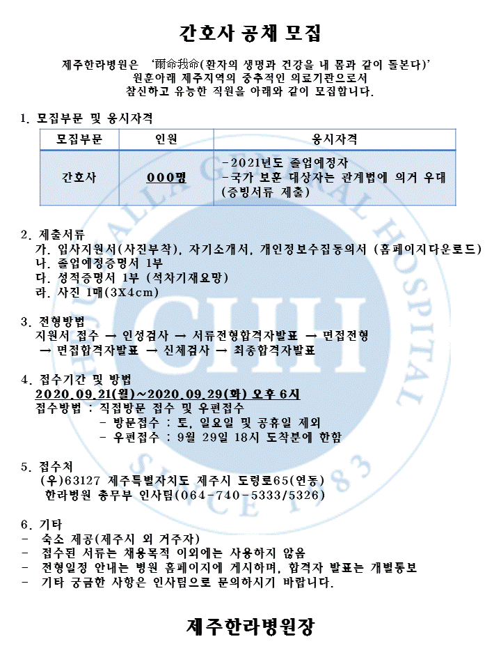 제주한라병원 2021년 신규간호사 모집