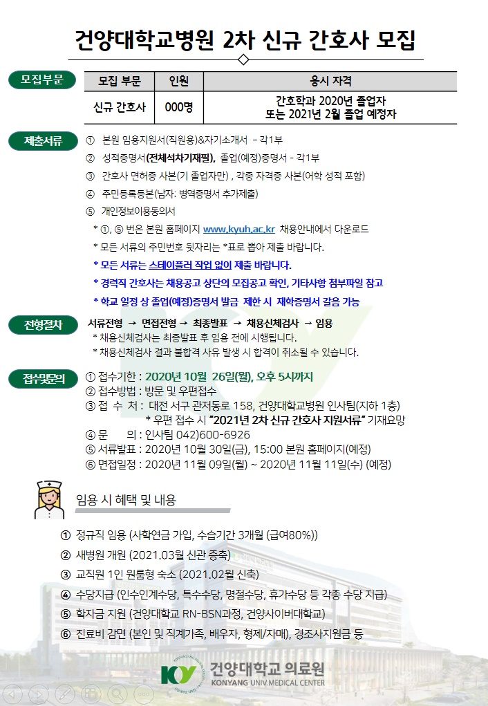 건양대학교병원 2021년 2차 신규 간호사 모집
