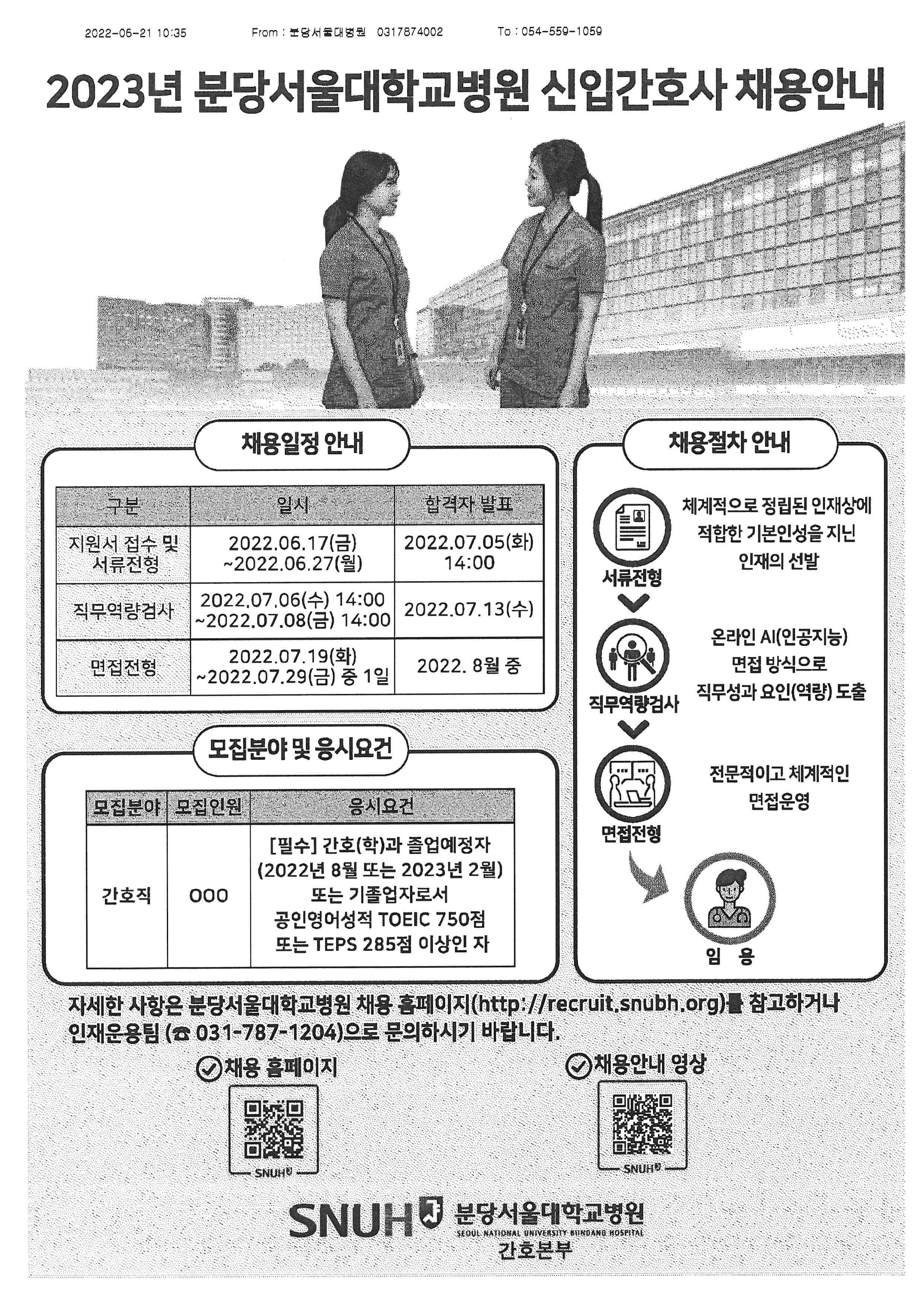 2023년 분당서울대학교병원 신입간호사 채용안내