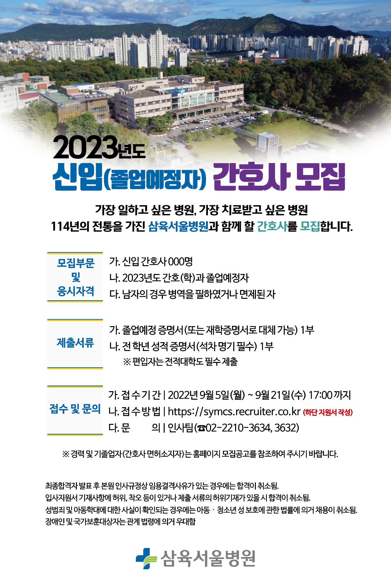 2023년도 삼육서울병원 신규간호사 모집 공고