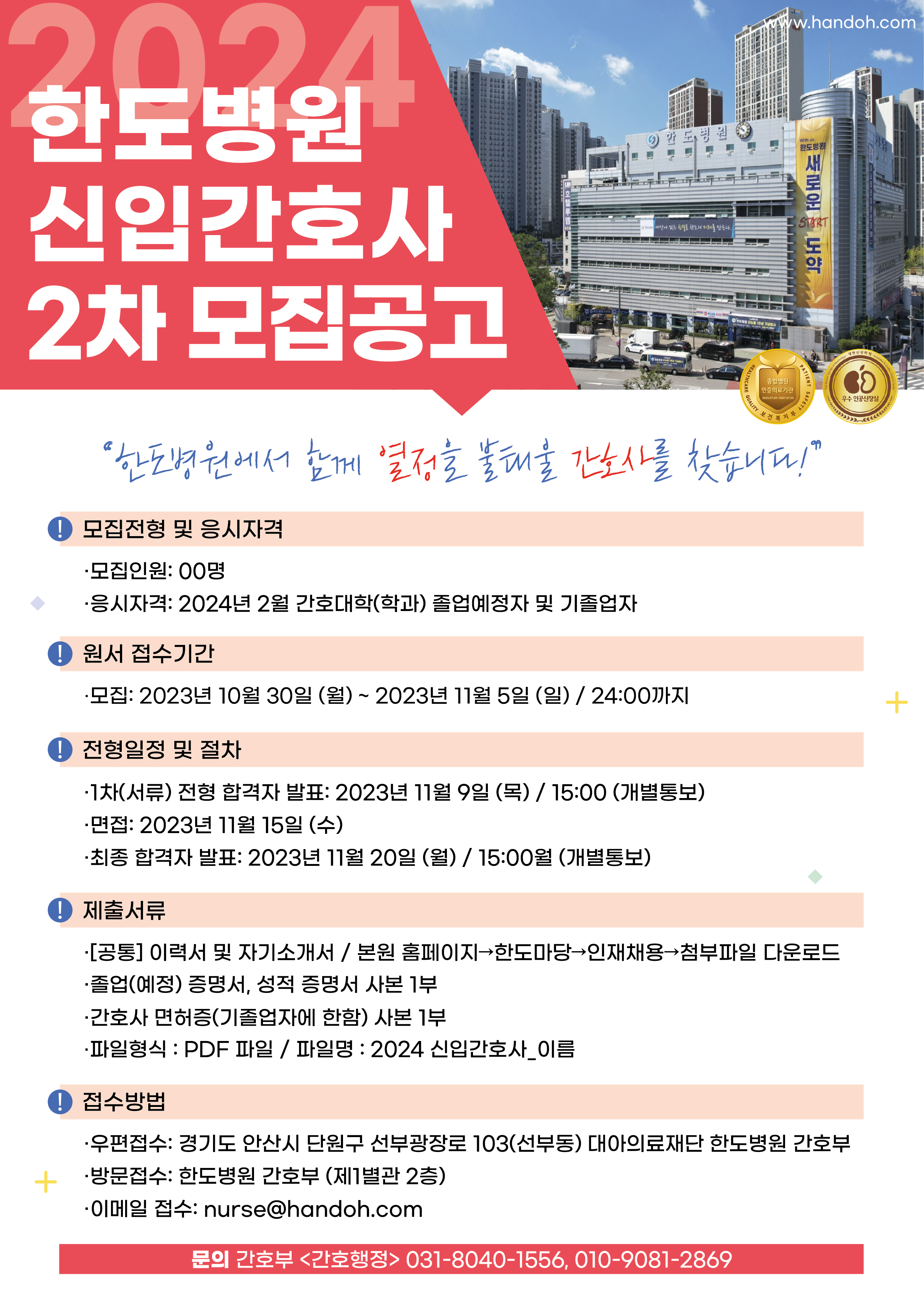 2024년 한도병원 신규간호사 2차 모집 안내