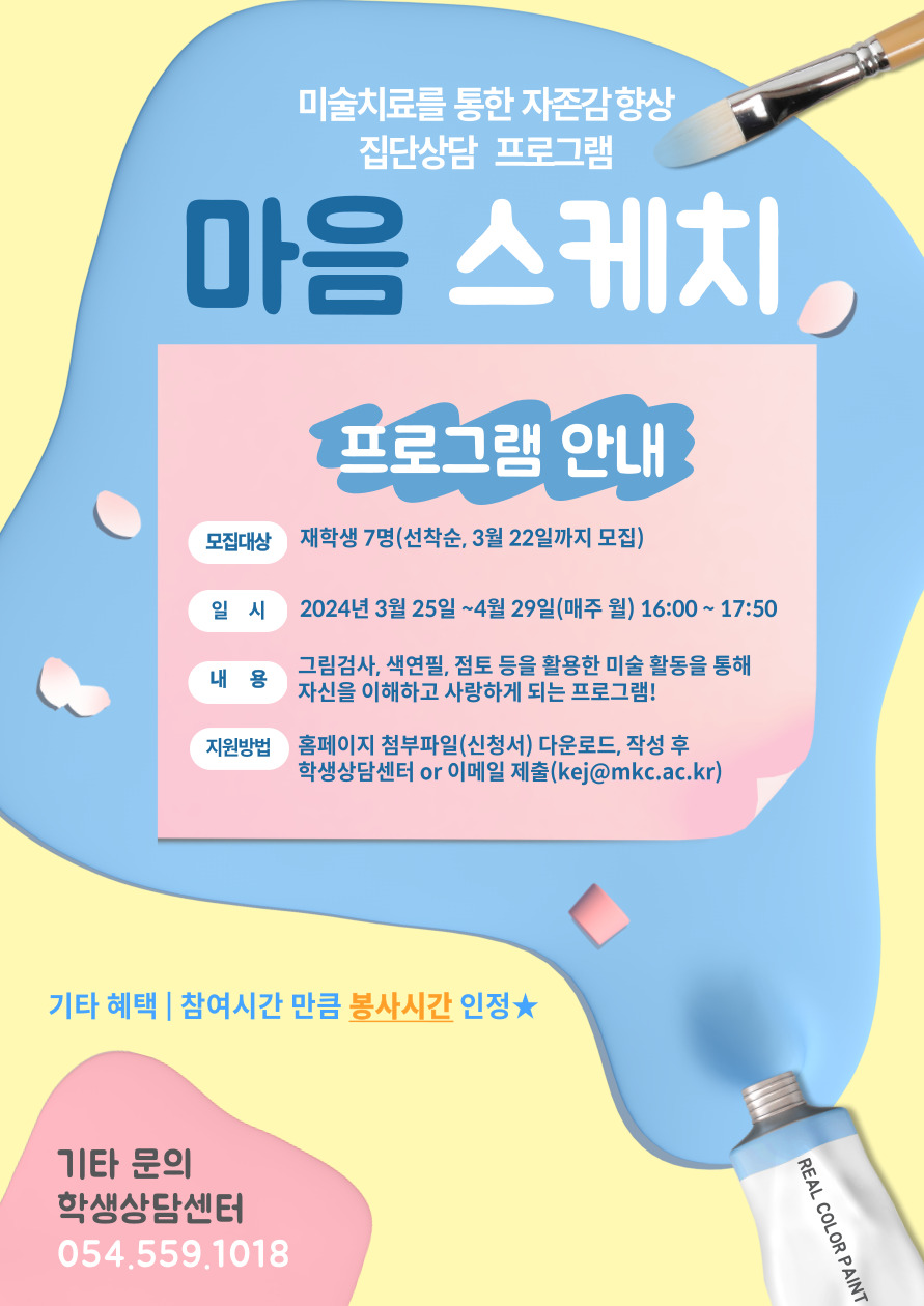 학생상담센터 미술치료 집단상담 프로그램 신청 안내