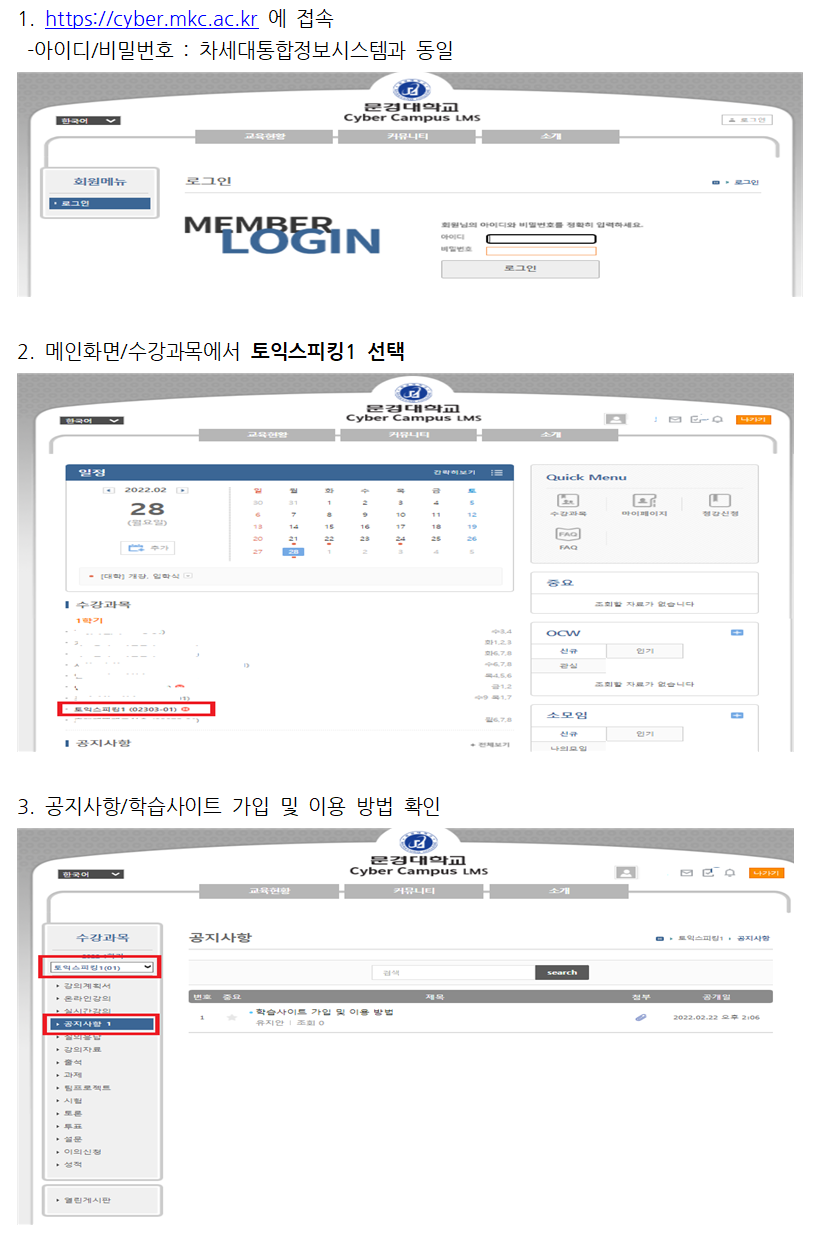 토익스피킹1 수강 신청 안내