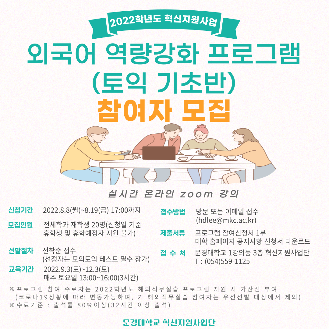 외국어역량강화프로그램(토익기초반) 참여자 모집