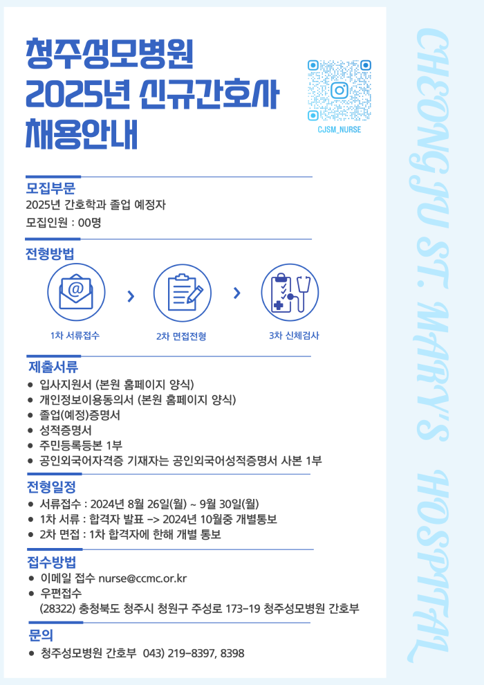 2025년 청주성모병원 신규간호사 채용공고 모집안내